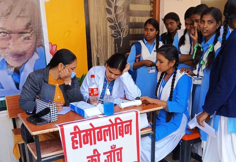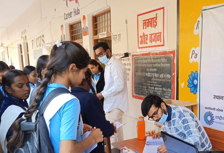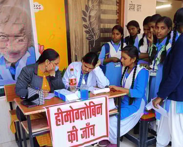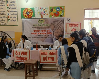 Our School Health Camps are designed to ensure that children studying in government and underserved schools receive timely healthcare support and a safe, healthy learning environment. These camps provide a comprehensive range of services such as general health check-ups, eye screening for vision problems, dental examinations, and basic diagnostic tests to identify common illnesses at an early stage. Through these efforts, we aim to detect health-related issues that may affect a child's education, concentration, or overall development. Along with medical care, the camps focus strongly on promoting hygiene and personal wellbeing. We distribute sanitary pads to adolescent girls, along with hygiene kits containing essential items that encourage daily cleanliness habits among students. To further support their educational journey, we also provide study materials, books, and stationery, ensuring that children have the necessary resources to learn comfortably and confidently. Awareness sessions on nutrition, handwashing, menstrual hygiene, and preventive healthcare are conducted to empower students with knowledge that will help them stay healthy and active. By bringing healthcare, education support, and hygiene awareness together under one initiative, our School Health Camps play a crucial role in nurturing healthier, confident, and well-informed young learners.