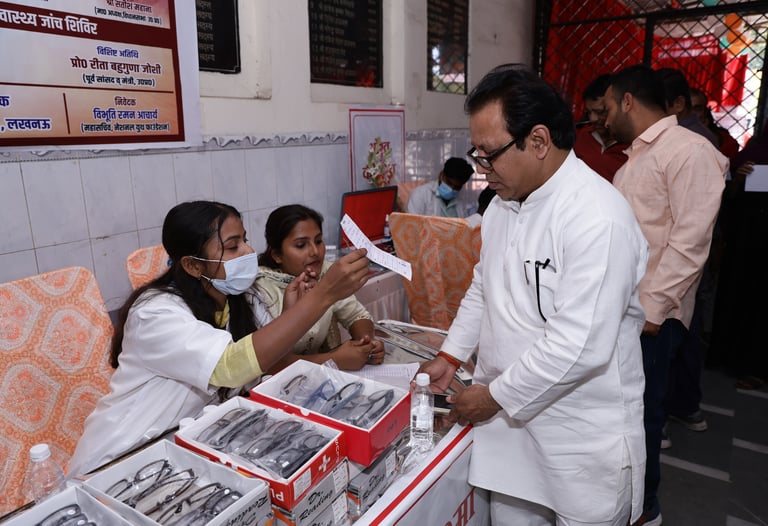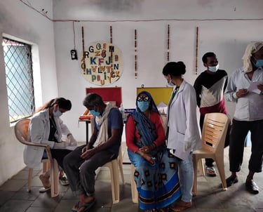 Our Community Health Camps are comprehensive outreach programs designed to provide quality healthcare services to rural, remote, and undeserved communities. These camps offer an extensive range of medical facilities, including general health check-ups, eye examinations, cataract detection, dental check-ups, and specialized consultations with heart specialists and gynecologists. Advanced diagnostic services such as ECG, Hemoglobin testing, and rapid tests for Malaria, Typhoid, and Dengue help in early detection and timely treatment of critical conditions. To support immediate healthcare needs, we also provide free distribution of essential medicines and vision glasses to patients. Along with clinical services, the camps conduct awareness sessions on preventive healthcare, hygiene, nutrition, and early diagnosis of diseases. By bringing multiple health services under one roof, these Community Health Camps ensure accessible, affordable, and impactful healthcare for families who need it the most.