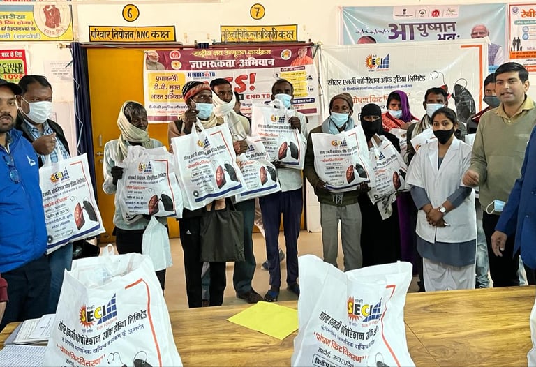 Under the Pradhan Mantri TB Mukt Abhiyan, we support the fight against tuberculosis by providing nutrition kits to TB patients who need additional care during their treatment. TB patients often face weakness and low immunity, making proper nutrition a crucial part of their recovery. Through this initiative, we distribute well-designed nutrition kits containing essential food items such as pulses, grains, protein sources, healthy snacks, and immunity-boosting supplements. Along with nutrition support, we also spread awareness about completing the full treatment, maintaining hygiene, and understanding early symptoms. This program helps reduce treatment drop-outs, improves recovery rates, and ensures that patients receive the physical strength and emotional support needed to overcome TB. Our efforts contribute to the national mission of building a TB-free India and supporting vulnerable families during their healing journey.
